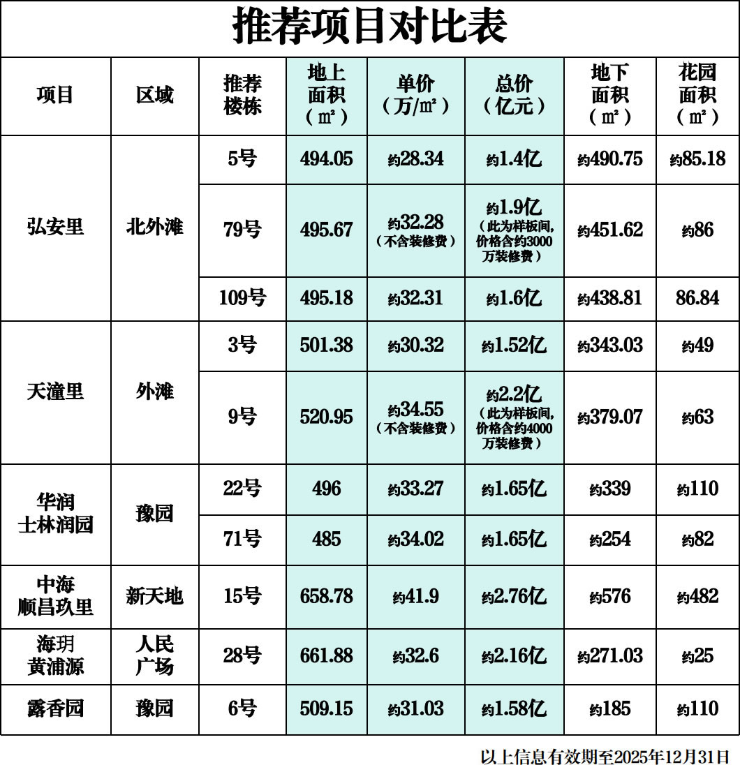 本次推薦約500㎡的房源,均為各項目的樓王或次樓王,故所推房源單價均為各項目較高值。
